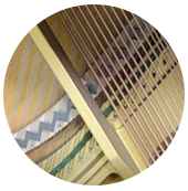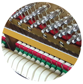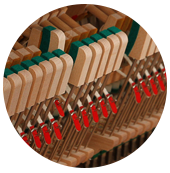 雅馬哈鋼琴琴槌以弦列為基準,進行擊弦面水平調整,弦槌間距調整同時針對不同羊毛呢氈的內應力,進行修型、釋放、以達到音色的統(tǒng)一以及不同音區(qū)的過渡。